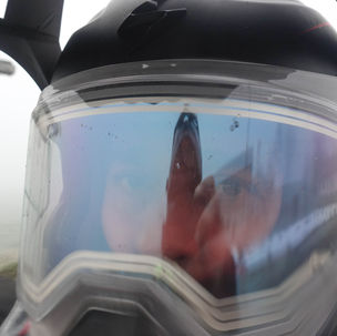 Pour vérifier l'efficacité de nos visières dégivrantes, Patrice ne branche pas la sienne durant 15 minutes. Le résultat est sans appel... Impossible de piloter si elle ne chauffe pas. Le givre et la buée empêche toute visibilité. De son côté, Jean Louis à une visière bien claire .