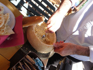 Basci nous a fait goûter des fromages très spéciaux. Le SU CALLU DE CRABITTU, un fromage Sarde très ancien. Le lait est mis à cailler dans un estomac de chevreaux ... Durant 4 mois il va prendre son onctuosité, son goût et son piquant. Une expérience particulière mais franchement agréable . (Mathilde ne pas plus approché durant l'après-midi)