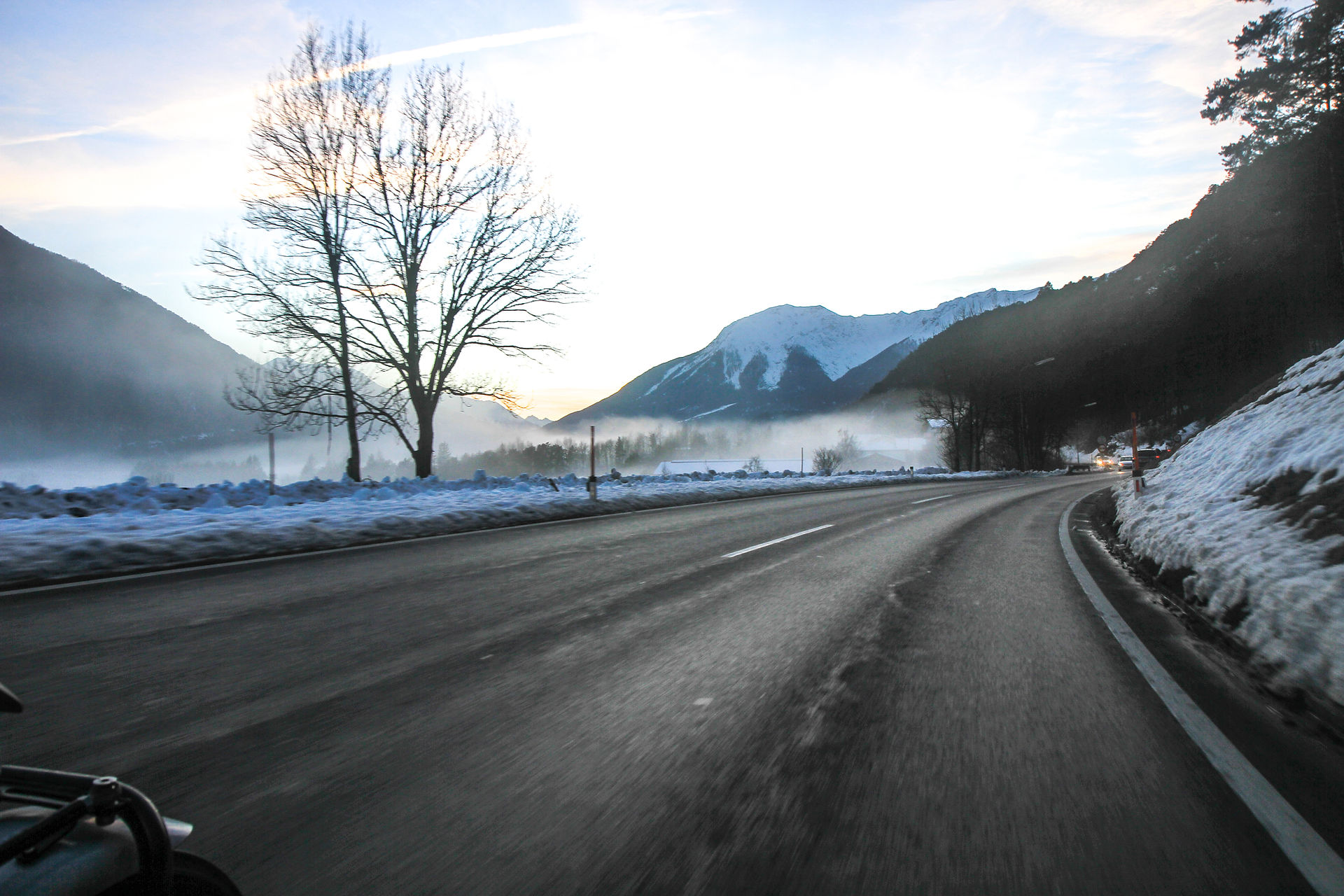 Nous arrivons à Davos de l'autre côté du Col . Il est temps de faire le point. Il nous reste environ 450 kilomètres à parcourir pour rentrer sur Annecy. Le temps passe vite et à 16h il fait déjà bien sombre.